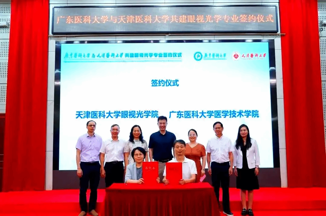 2025年,学院与天津医科大学眼视光学院签署专业共建协议,双方将在高水平师资队伍打造、AI融合课程、智能化实践平台、联合科研攻关及成果转化、以及培养引领未来的拔尖创新人才等多个维度开展全方位、深层次的战略合作,共同创新眼视光学教育科研新范式。同年,学院承建的广东医科大学视觉健康科普馆揭牌,该馆集科普教育、学术交流和实践体验于一体,旨在拓展实践教学,服务社会,并助力东莞市青少年近视防控,打造具有广东医特色的视力健康品牌。