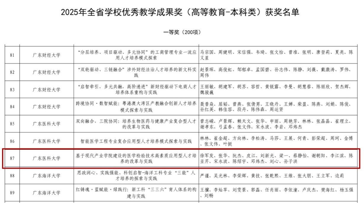 学院获2025年广东省高等教育教学成果一等奖的公示名单